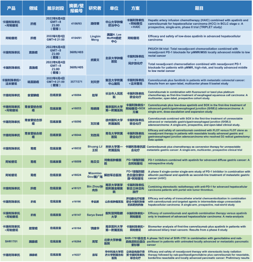 消化道领域,四款创新药物实现食管、胃、肠、肝、胆和胰腺等消化道肿瘤全覆盖。卡瑞利珠单抗和阿帕替尼,以及未上市创新药法米替尼和SHR1701在消化道的研究共入选5项壁报展示和13项线上发表,可谓硕果累累。